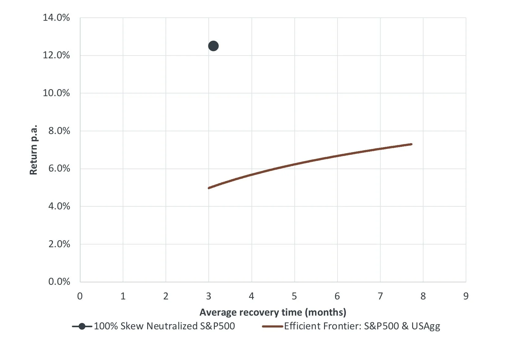 For an equivalent recovery time, the skew neutralized portfolio generates an additional 7% p.a. in return.
